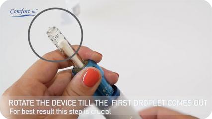Selecione na escala graduada do dispositivo o volume de medicamentos que desejamos administrar. Essa fase será realizada somente após o carregamento do dispositivo.