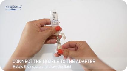 Conecte o bico ao adaptador apropriado, girando o parafuso, para garantir o aperto. Depois disso, é possível retirar o medicamento.